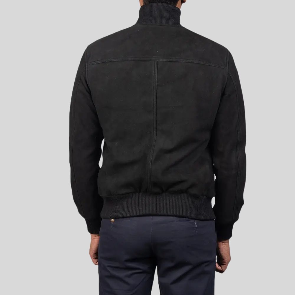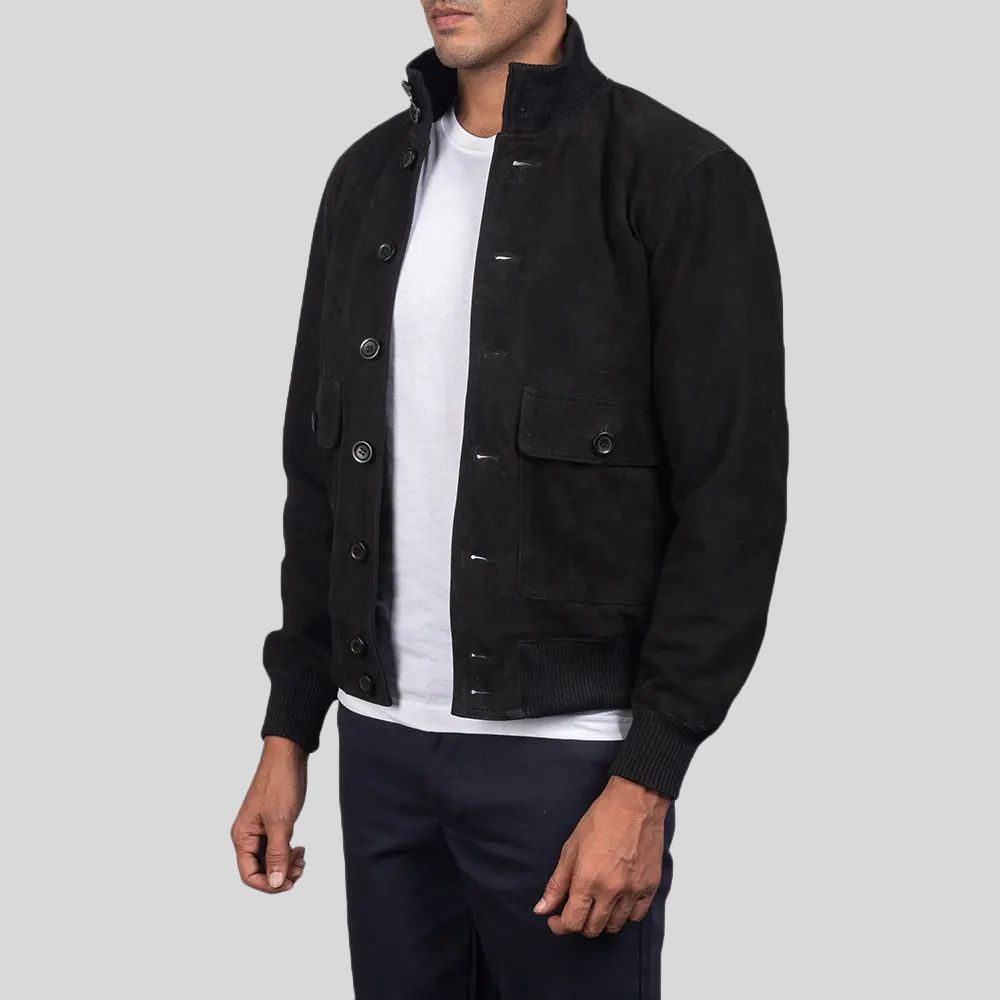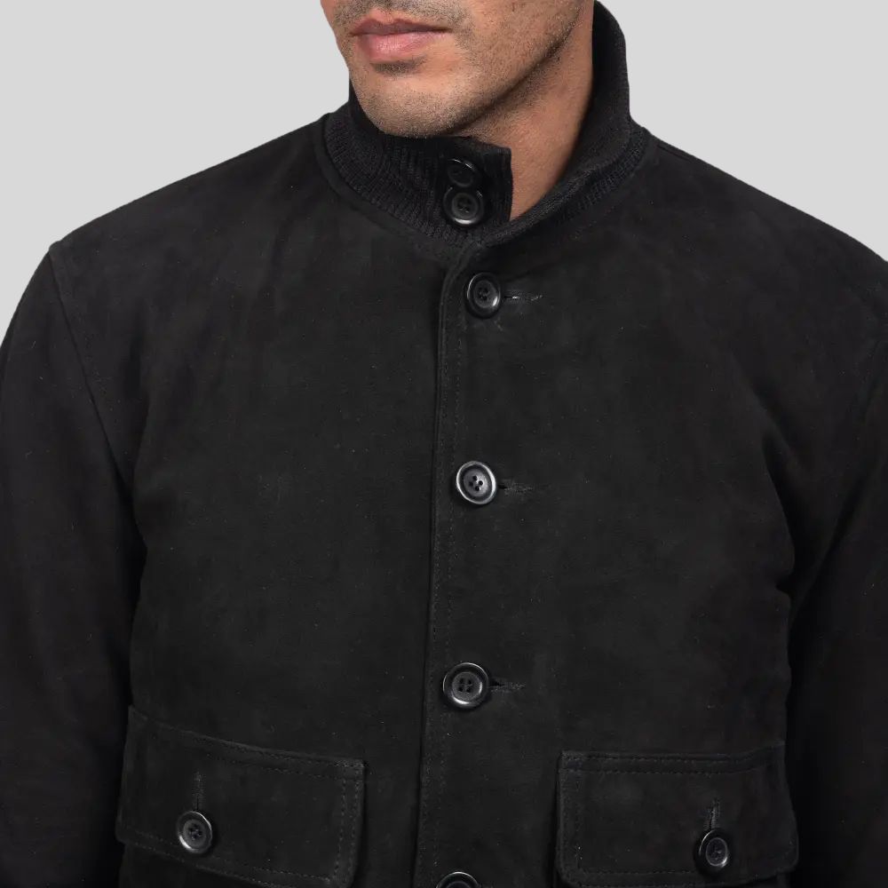 Wildleder Blouson Herren Schwarz – Stehkragenjacke mit Knöpfen & Bündchen
